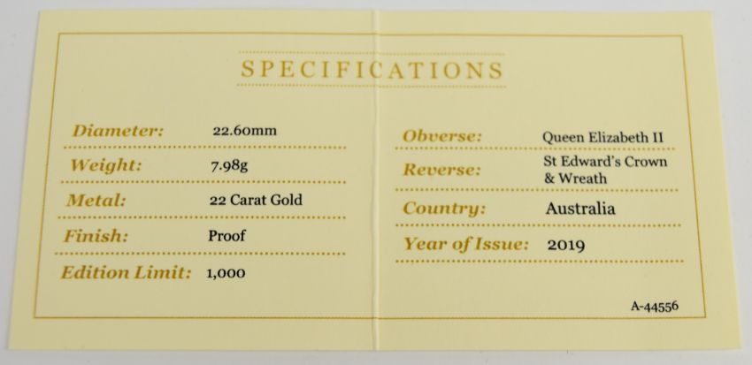 Perth Mint Australia cased limited edition (0928/1000) 2019 proof $25 gold full sovereign with Coin Portfolio Management and Perth Mint certificates