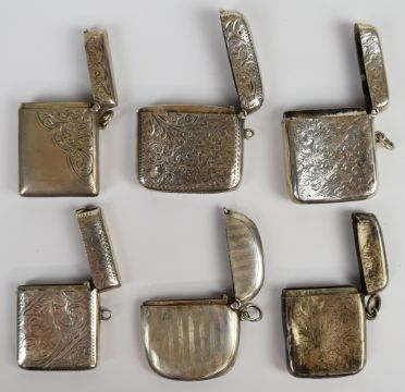 Six Victorian and later hallmarked silver vesta cases, height of tallest 5cm, weight of all six 187g
