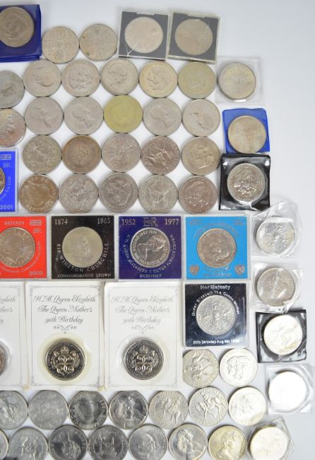 Approximately fifteen £5 coins and 130 various crowns including 1972,1977, Channel Islands etc