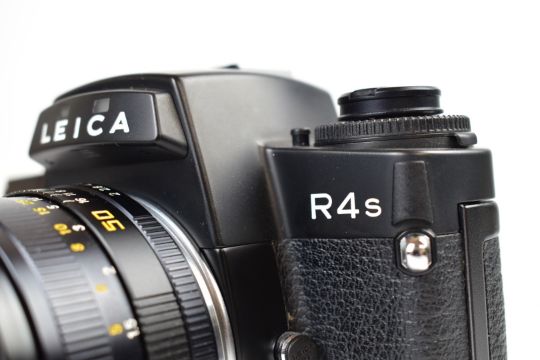 Leica R4s 35mm shop display SLR camera, serial number removed, with Leitz Summicron-R 1:2/50 lens, serial number 3233618, circa 1984, both having original boxes marked dummy, both lens and camera body being non functioning display items
