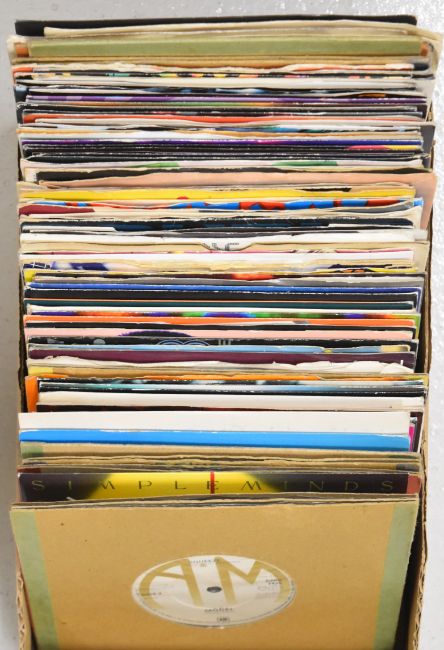 Approximately eighty five UK 7" singles mostly 1980s Post Punk / New Wave / Indie including Jilted John, Simple Minds, New Order, Blondie, Sparks, Squeeze, Patti Smith, Boomtown Rats, Skids, Tourists, Human League, Enigma, The Cure, The Beloved, Happy Mondays, Sinead O'Connor, Stranglers, Shamen, James, Talk Talk, Tears for Fears, Lene Lovich, The Clash, Scritti Politti, Landscape, Pet Shop Boys etc.