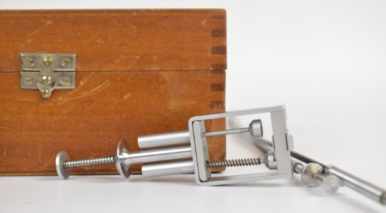 Leitz MIKAS microscope attachment with both screw and bayonet mount adaptors, in original fitted case with two release cables and coupler