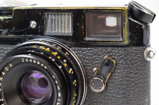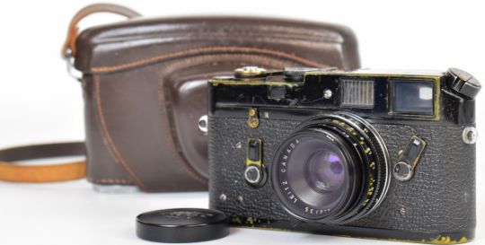 Leica M4 35mm rangefinder camera with black body, serial number 1225446, circa 1969, fitted with Leitz Canada Summicron 1:2/35 lens, serial number 2446694, circa 1970, with UVa filter, Leica lens cap and Leica leather case