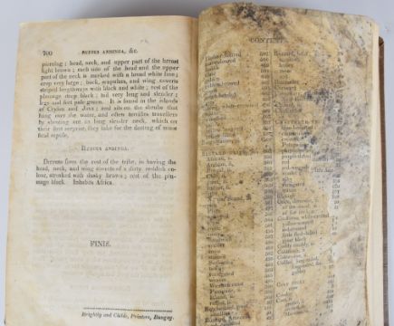 [Dodo etc] The Natural History of Birds, From The Works of the Best Authors Ancient & Modern embellished with numerous plates accurately coloured from nature, printed and published by Brightly & Childs, Bungay Suffolk published also by T. Kinnersly 1815 in 2 volumes with this copy containing 150 full-page hand-coloured plates (including coloured engraving of the Dodo), bound in brown cloth with gilt titles – some staining of pages at beginning of volume 2 and index, with some loss to first index page [From the Library of Major William Herbert Mullens of Westfield Place in Sussex with autograph letter detailing his findings on the publication, it being issued in parts priced at 6d each]