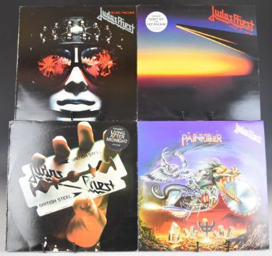 Eight Judas Priest LPs and seven Thin Lizzy LPs comprising Judas Priest Painkiller, British Steel, Point of Entry, Killing Machine, Screaming For Vengence, Rocka-Rolla, Sin After Sin, and Stained Class and Thin Lizzy Johnny the Fox, Jailbreak, Remembering Part 1, Bad Reputation, Renegade, Black Rose, Thunder & Lightning. Vinyl appears VG+ to Ex+ in the main