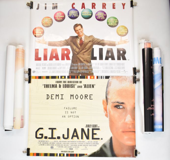 Over forty 1990s British quad and one sheet film posters to include Entrapment, Multiplicity, Othello, Hamlet, Matilda, 8mm, Antz, GI Jane, Liar Liar, Nine Months, Apt Pupil and Mighty Morphin Power Rangers The Movie, 76 x 101cm and 69 x 102cm, rolled.