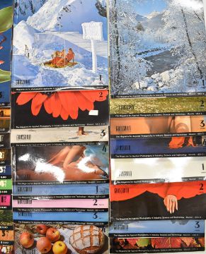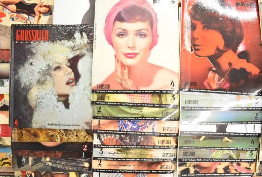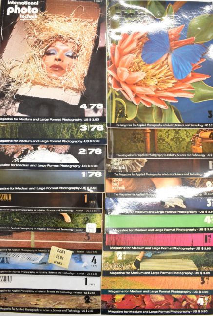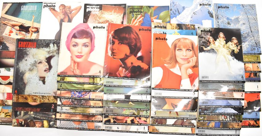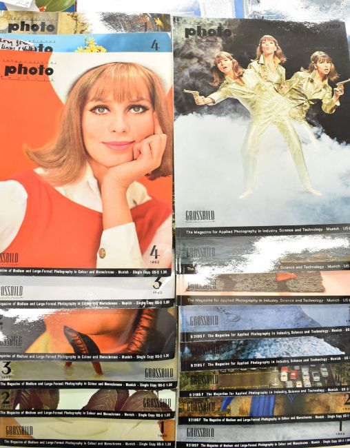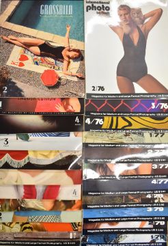 Ninety six issues of Grossbild / International Photo Technic Magazine, English Edition for modern large-format photography in colour and in black & white, issue no.1 1956 through to 1979, in original glossy wrappers and housed in 12 publisher's book boxes