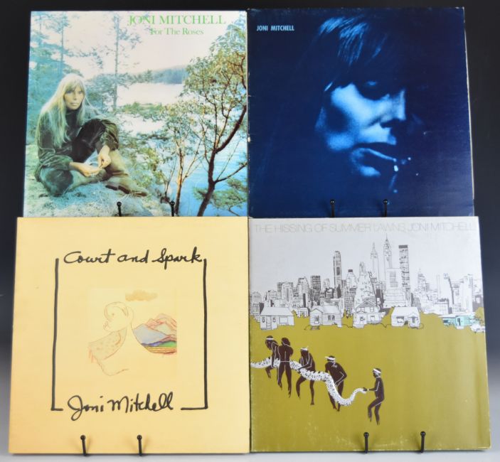 Joni Mitchell - eight LPs comprising The Hissing of Summer Lawns, Court & Spark, Blue, For the Roses, Chalk Mark In A Rain Storm, Night Ride Home, Hejira and Wild Things Run Fast. Vinyl appears VG+ or better in the main