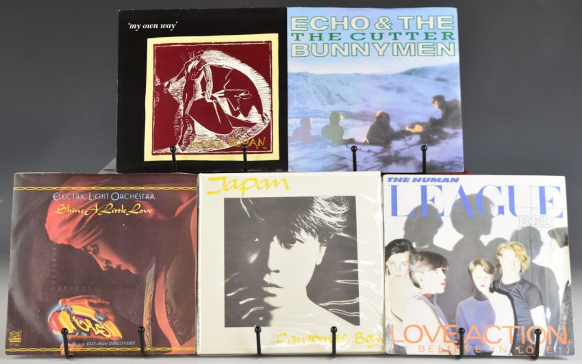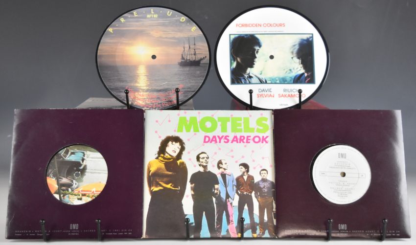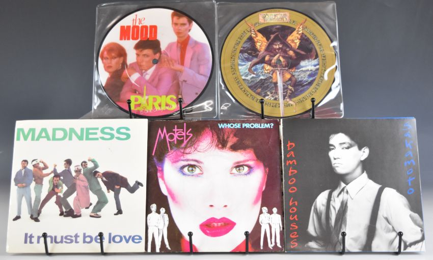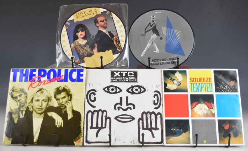 Approximately one hundred and forty 7" singles, mainly 1980s Post Punk / Rock / Pop, many with picture covers and five picture discs including XTC, Squeeze, Icehouse, Police, Jam, OMD, Motels, Madness, Sylvian, Japan, Human League, ELO, Duran Duran, Cars, David Bowie, Associates etc. Records are very clean and appear at least Ex in the main