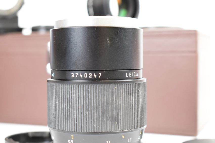 Leica APO macro Elmarit R R mount 1:2.8/100 lens, with B+W filter, front and rear covers, 16545 and 12528 adaptors and R mount to M mount 14642 adaptor