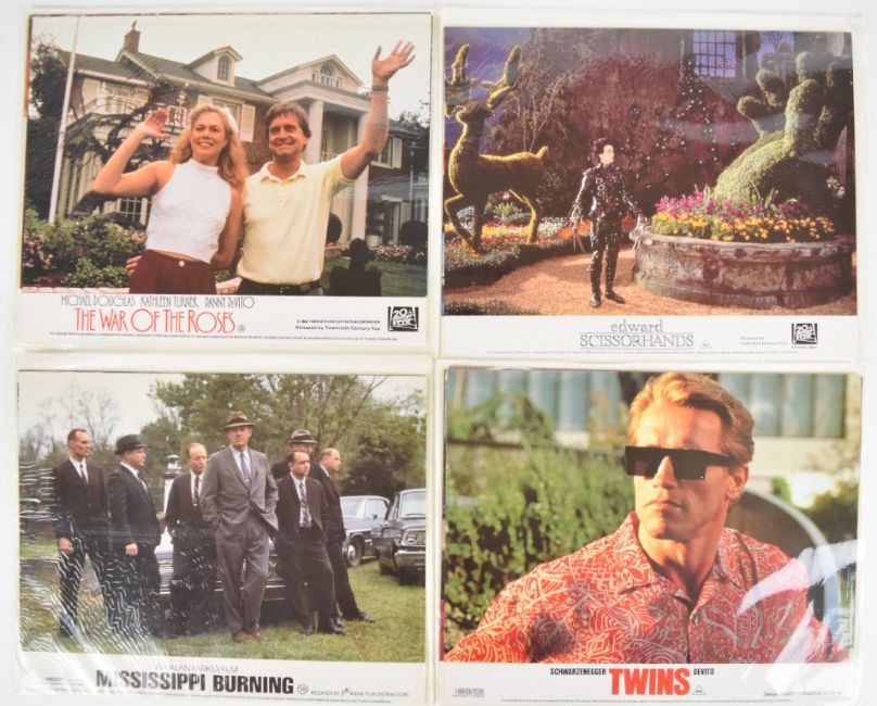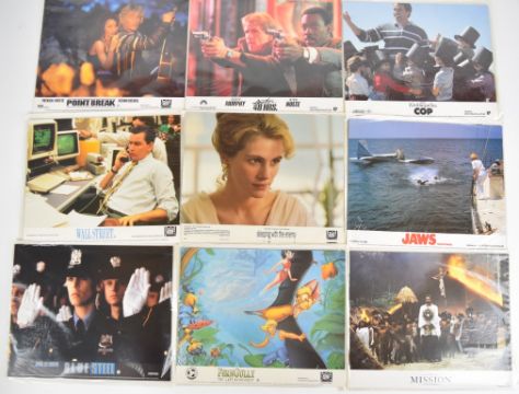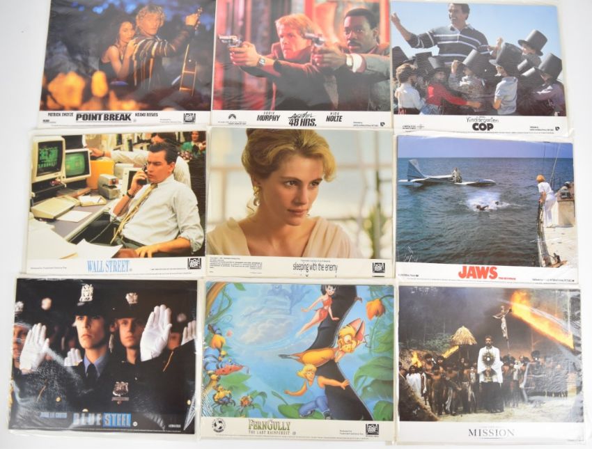 Thirty 1980s and 90s cinema lobby card sets to include Wall Street, Withnail and I, Jaws The Revenge, Superman IV, Cape Fear, Sleeping With the Enemy, A Few Good Men, Another 48 Hours, Point Break, Big, Teenage Mutant Ninja Turtles II, The Rescuers, Twins, Kindergarten Cop, Mississippi Burning and Edward Scissorhands. Each set comprising eight 25.5 x 20cm cards.