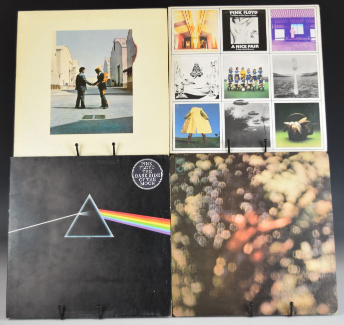 Pink Floyd - twelve Prog Rock LP's comprising The Division Bell (7243828984), The Wall (SHDW 411), A Momentary Lapse of Reason (EMD 1003), Animals (SHVL 815), Obscured By Clouds (SHSP 4020), Dark Side of The Moon (SHVL 804), Wish You Were Here (SHVL 814), A Nice Pair (SHDW 403), Meddle (SHVL 795), Atom Heart Mother (SHVL 781), More Soundtrack (SCX 6346) and The Final Cut (SHPF 1983). Vinyl generally appears VG+ to Ex+