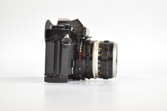 Nikon Nikkormat FT2 35mm SLR camera, serial number 5141235, with Nikkor-S 1:2.8 f=35mm lens, serial number 385316, with Nikkor cap