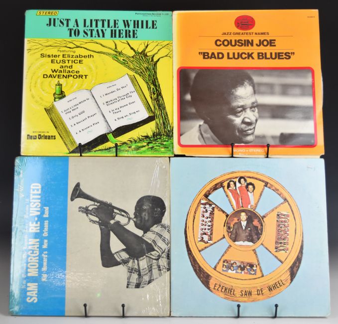 Approximately forty eight rare and obscure Jazz LPs, appears to include some private pressings, the majority appear to be USA imports, labels include Jazz-Ology Smoky Mary, Riverside, GHB, Storyville, Dan, Jazz Crusade, Honky Tonic, Swift Folkways, many Louisiana and New Order Jazz titles etc. Many in opened shrink wrap, records appear VG+ to Ex in the main