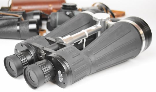 Cameras and binoculars comprising Olympus OM10 35mm SLR with 50mm 1:1:8 lens, Rollei 35B, Helios 20 x 80 binoculars, Newton NV3 x 42 scope and a pair of Lieberman & Gortz 7 x 50 binoculars
