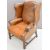 Leather wing back armchair raised on straight mahogany legs, H109cm