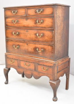 19thC mahogany chest on stand with two over three graduated drawers over three straight drawers, W104 x D48 x H138cm