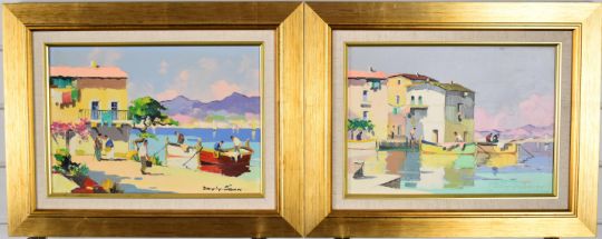 After Cecil Rochfort D'oyly-John pair of oils on canvas with script verso 'St Maxime, near St Tropez, French Riviera' and 'Village of Beaulieu, near Monte Carlo, French Riviera' , 24 x 36cm