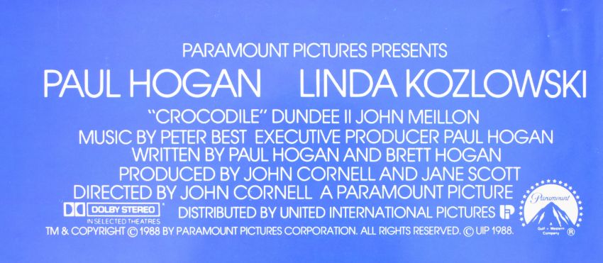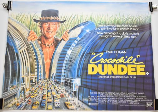 Four Crocodile Dundee (1986) and Crocodile Dundee II (1988) British quad film posters, 76 x 101cm, rolled
