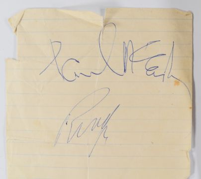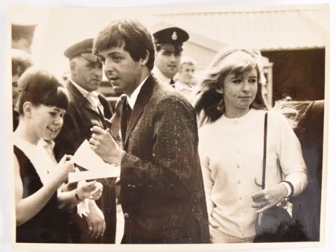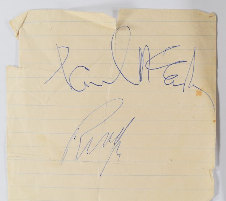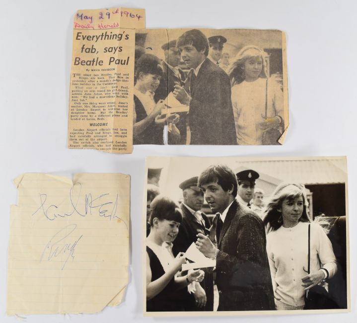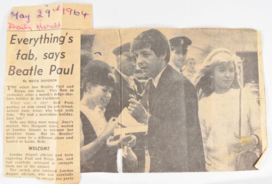 The Beatles Paul McCartney and Ringo Starr autographs obtained at Luton Airport, May 29th 1964 on the vendor's shorthand notebook, with newspaper clipping and photograph of the notebook being signed