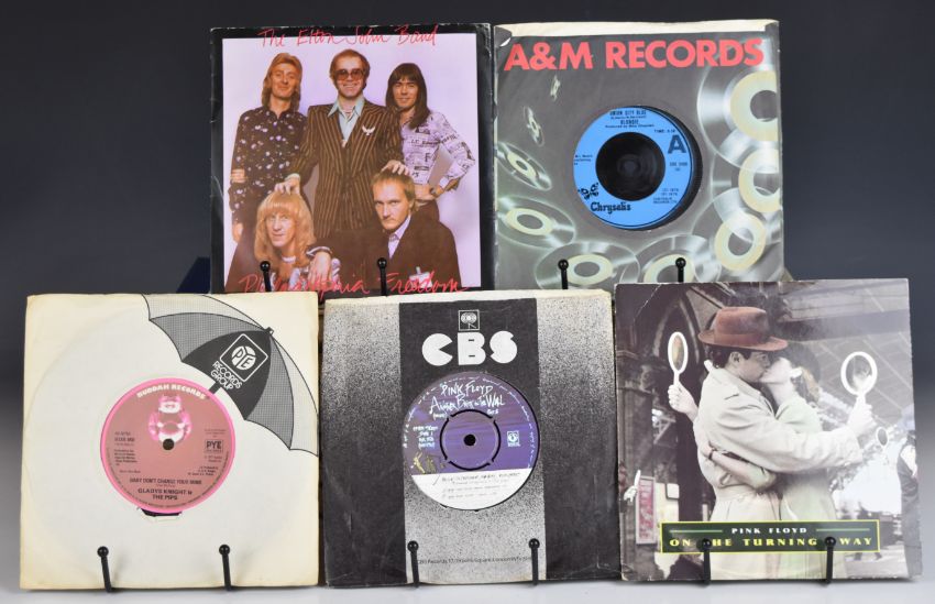 Approximately four hundred 7" singles, mainly 1960s to 1980s Pop, Rock, Soul etc, including Elton John, David Bowie, Pink Floyd, Badfinger, The Small Faces, Jethro Tull, Steeleye Span, Jimi Hendrix, 10cc, Police, George Clinton etc