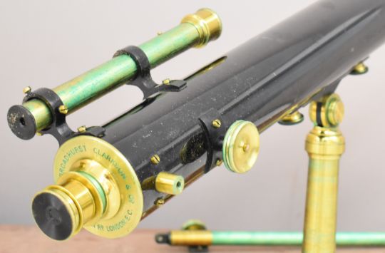 Broadhurst Clarkson & Co., 63 Farringdon Rd, London late 19th or early 20th century astronomical telescope with attached finder scope, in fitted box with extra eyepieces etc, overall minimum length 97.5cm, diameter 8.5cm