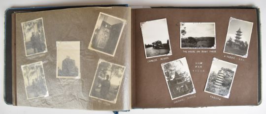 Album of photographs compiled during 1947-1949 from Nee Soon camp in Singapore, with images in and around the village, the camp and colleagues, shrines and temples, S.S. Strathnaver, Pasir Panjang, Changi, Chinatown, Pasir Ris, Kuala Lumpur, Cameron Highlands, Kuala Kubu station, Penang, Tortoise Pool, Penang Hill railway etc, approximately 200 photographs neatly presented and many titled, together with Rover Scouts membership card 1949. Together with a 1920s dated album compiled by a member of the University College of North Wales (U.C.N.W) recording various trips and excursions and a Victorian leather bound album of portraits, including several police, military, Girl Guides, motorcycles (1913) etc (some loose)