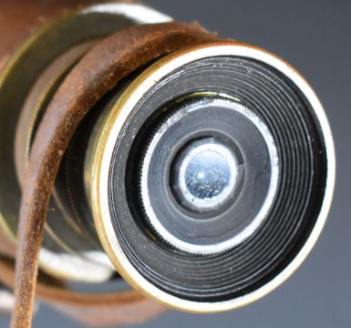 Dolland London leather bound brass three draw telescope, attached to a Parker Hale tripod