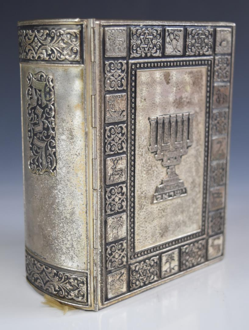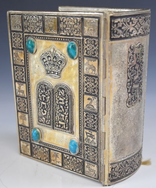 [Binding] The Hebrew Bible with English Translation edited by M. Friedlander sanctioned by The Rabbinate, Jerusalem Bible Publishing by Hamadpis Liphshitz Press (c.1970s), bound in an ornate silver metal binding with embossed Jewish symbols and faux turquoise stones