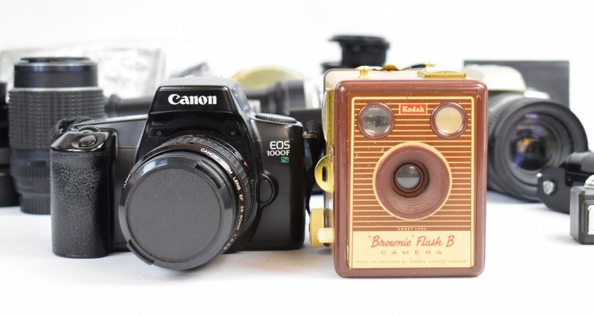 Collectable and 35mm SLR cameras to include Nikon F60 with 28-200mm 1:3.5-5.6D lens, Canon EOS 1000F N with 35-80mm 1:4-5.6 lens, Kalimar K-90 with 50mm 1:1.7 lens, Pentax P30N with 28mm 1:2.8 lens, Instamatic 50, Pentax-M 1:2 50mm and 1:2.5/135 lenses, Walimex 500mm 1:8 lens and Ensignette No 2 and Ensign Ranger II folding cameras