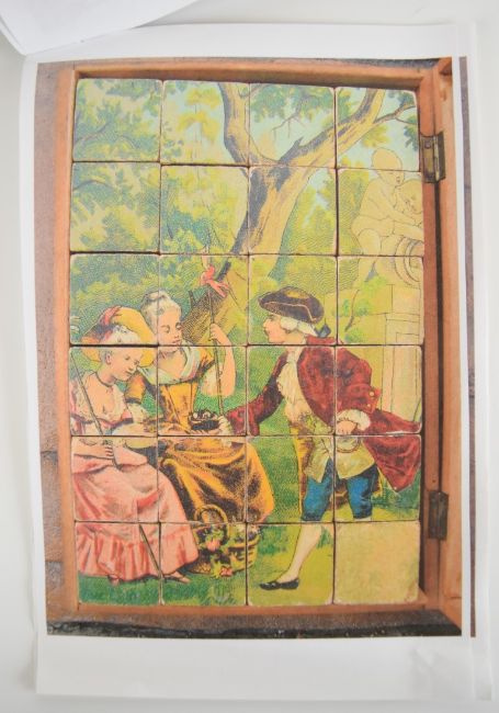 Late Victorian French wooden block puzzle in fitted box,14x21cm