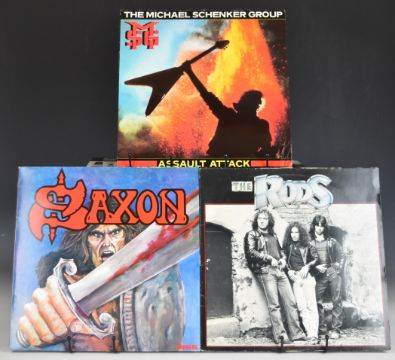 Over forty Hard Rock / Heavy Rock / Prog Rock LPs including four Ritchie Blackmore's Rainbow, two Black Sabbath, two Boston, AC/DC, Meatloaf, two W.A.S.P, Ratt, two Saxon, Michael Shenker, Rush, Slave Raider, Progress, Limey etc. includes white label one sided LP