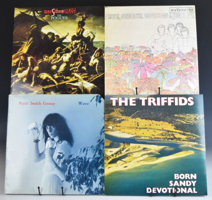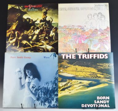 Over fifty Punk / New Wave / Prog Rock / Folk Rock & Rock LPs including Patti Smith, two Elvis Costello, Pogues, Country Joe McDonald, The Beatles, The Rolling Stones, Bob Dylan, The Triffids, Boomtown Rats, Simple Minds, Bill Nelson, Talking Heads, two David Bowie, Paul McCartney, Jane & Barton, Jim Morrison & The Doors, Mountain Avalanche, The Monkees Pisces, Aquarius, Capricorn & Jones Ltd.