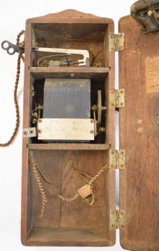 Vintage Julius Andrae & Sons oak cased hand cranked telephone, H58cm