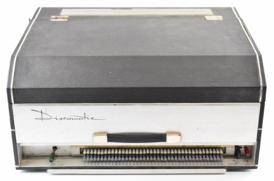 Discomatic portable jukebox with the capacity to hold forty 45rpm vinyl records. Jukeboxes of this type were made famous by The Beatles in the 1960s.