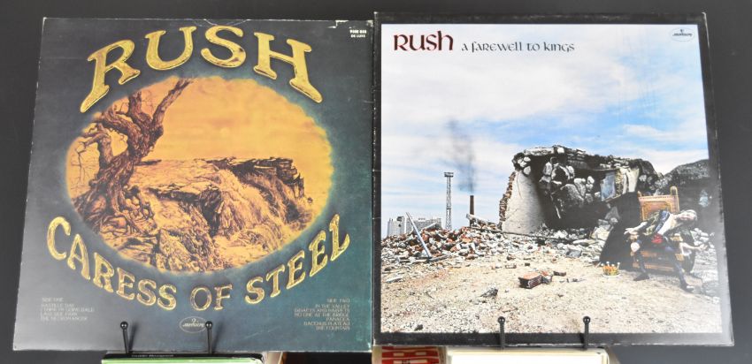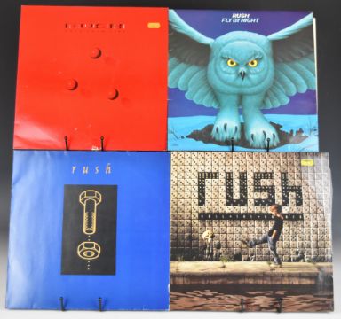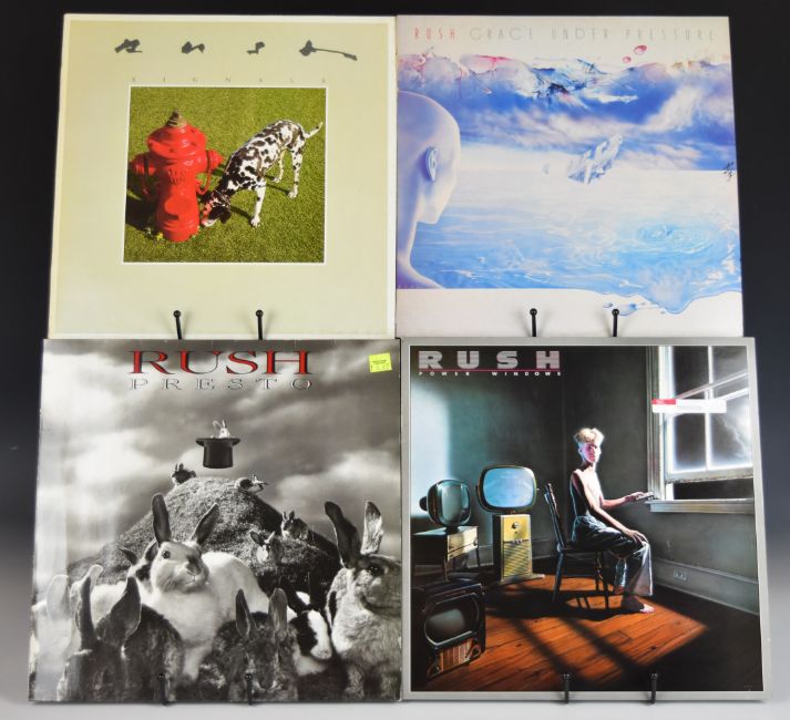 Rush - fourteen Prog / Symphonic / Hard Rock LPs comprising Counterparts (STL 7567 82528-1), Roll The Bones (STL 7567 822 93-1), Fly By Night (MER 9100 013), Presto (ATL 782 040-1), Power Windows (Vertigo VERH31), Grace Under Pressure (VERH-12), Signals (MER 6337), 2112 (MER 910039), Moving Pictures (MER 6337160), Permanent Waves (MER 9100071), Hemispheres (MER 910059), A Farewell To Kings (MER 9100 042), Caress Of Steel (MER 9100 018), vinyl generally appears VG+ to Ex+