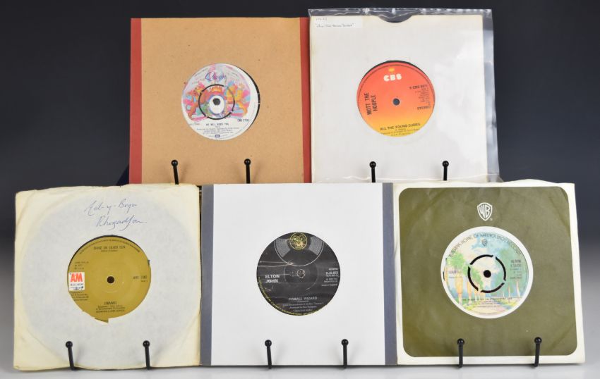 Approximately three hundred and fifty 7" singles, mostly 1970s and some earlier or later, including The Move, The Police, Jimi Hendrix, Roxy Music, Fleetwood Mac, Elton John, Kate Bush, Bob Dylan, The Kinks, Queen, The Hollies etc