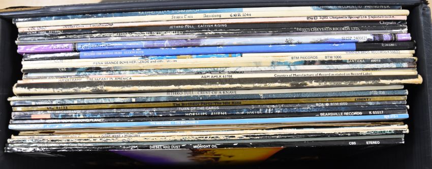 Twenty seven Prog Rock / Psychedelic Rock LPs including Spooky Tooth It's All About, City Boy Young Men Gone West and The Day The Earth Caught Fire, Utopia Oops! Wrong Planet, Tin Machine II, The Birthday Party, The Idle Race, Horslips Aliens, Steve Hillage Green, Green On Red Here Comes The Snakes, Midnight Oil Diesel & Dust, Pallas The Sentinel, Uli Jon Roth Electric Sun, three Renaissance, three Santana, Supertramp and eight Jethro Tull, vinyl generally appears VG+ to Ex+