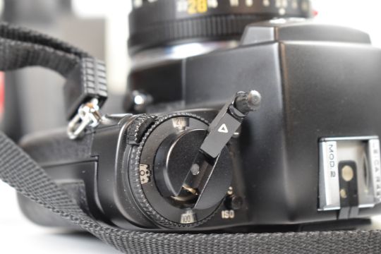 Leica R4s-2 35mm SLR camera, serial number 1685107, circa 1985, with Leitz Elmarit-R 1:2.8/28 lens, serial number 3185233, circa 1982, with 12509 hood and motor wInder R4 and cover, with boxes for the winder and lens