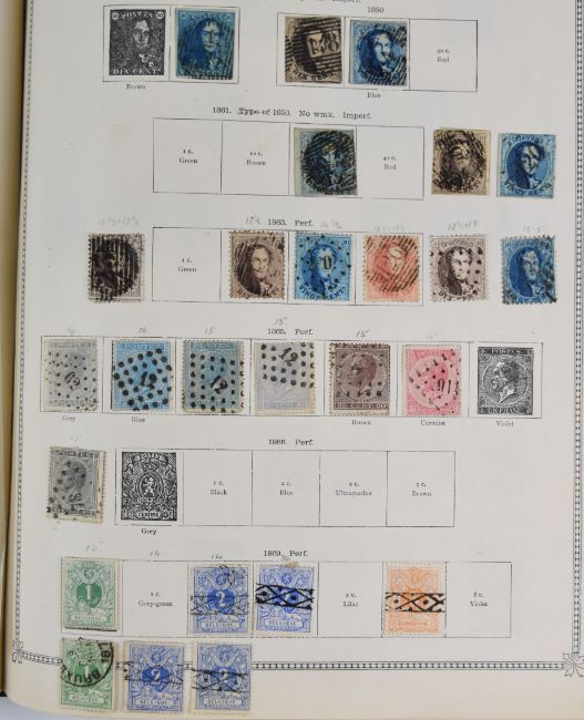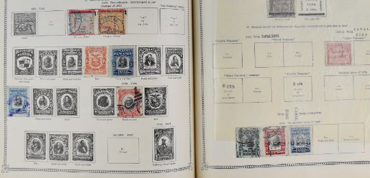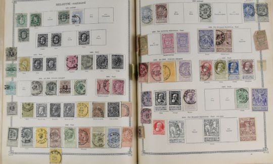 The Ideal postage stamp album, partly filled and remaindered with Belgium and USA including a Columbus set used to 30c (2) and Trans-Mississippi issue 50c used