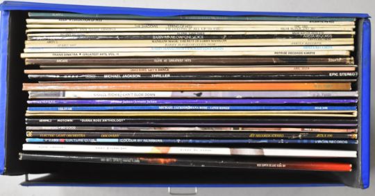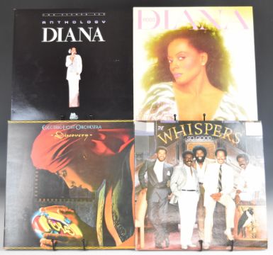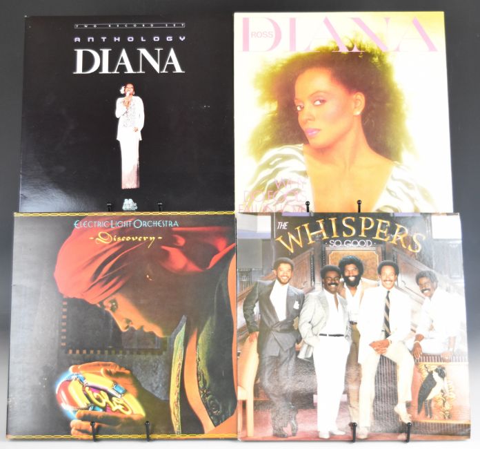 Twenty two LPs including ELO, Whispers, Diana Ross, Lionel Richie, Michael Jackson, Jermaine Jackson, Culture Club, Paul McCartney, Bee Gees, Barry Manilow, Abba, Shadows, Osmonds, Elvis Presley etc together with four 12" singles including Michael Jackson Beat It and Thriller. Very clean covers and vinyl generally appears Ex