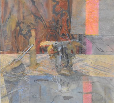 Paul Newland N.E.A.C, R.W.S gouache 'Still Life Pressed Flowers Under Glass', label verso, 15 x 17cm