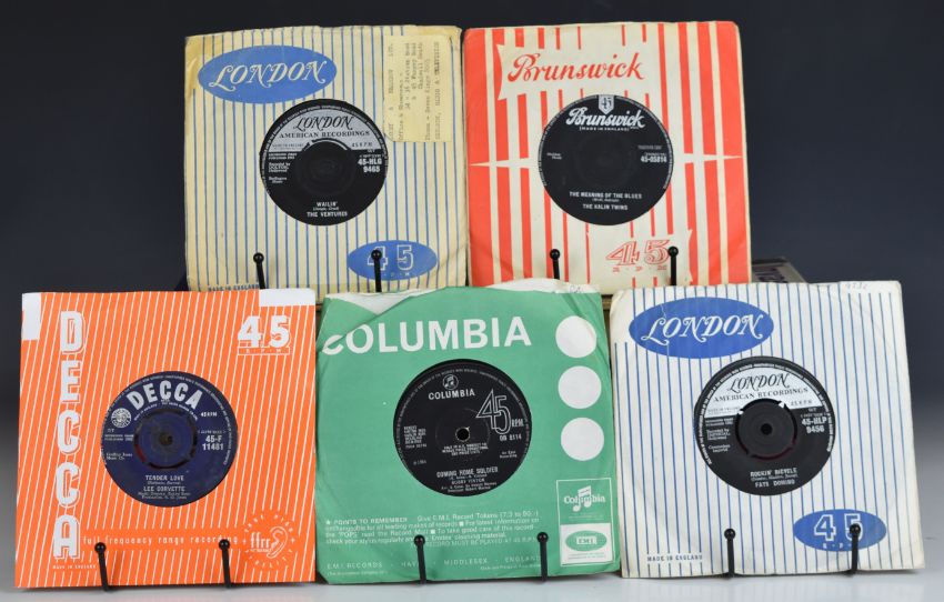 Approximately four hundred 7" singles, mainly 1960s, many in correct period sleeves including Lee Dorsey, The Young Idea, Jerry Wallace, Chris Wayne, The Cookies, Little Eva etc