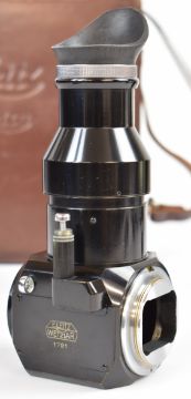 Leitz mirror reflex housing outfit to suit Leica screw mount cameras, comprising PLOOT housing with eyepiece, Leitz Telyt f=20cm 1:4.5 lens, serial number 272078, circa 1935, filter hood, front and rear caps for both lens and housing and twin trigger, in original fitted case