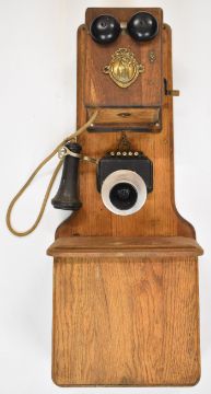 Vintage Kellogg oak cased hand cranked telephone, H82cm