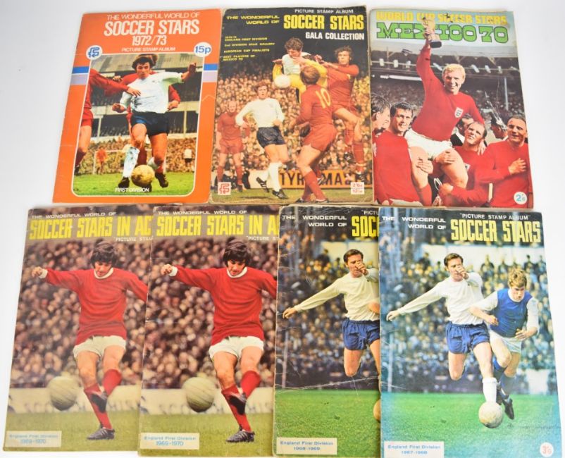 Seven 1960s and 70s Soccer Stars football sticker albums to include World Cup Mexico 70, Gala Collection and The Wonderful World of Soccer Stars in Action, albums have a high completion percentage, together with over 60 programmes from the same era.