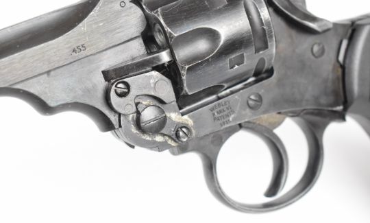 Webley Mk VI Service Revolver .177 CO2 air pistol with chequered composite grip and belt loop, serial number 15B14070.