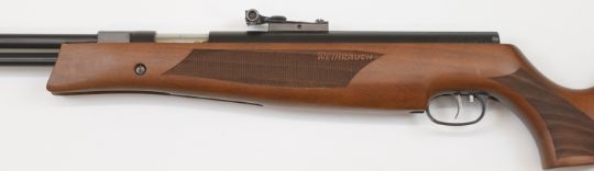 Weihrauch HW77K .177 underlever air rifle with chequered semi-pistol grip and forend, raised cheek piece and adjustable trigger and sights, NVSN.