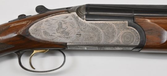 Rizzini 12 bore over and under ejector shotgun with engraved scenes of birds to the sidelock plates and underside, engraved trigger guard, top plate and thumb lever, chequered semi-pistol grip and forend, single trigger, vented top and central ribs and 30 inch barrels choked ¾ and full, overall length 119cm, length of pull 35cm, serial number 54230. PLEASE NOTE THAT A VALID RELEVANT FIREARMS/SHOTGUN CERTIFICATE IS REQUIRED TO HANDLE/PURCHASE THIS ITEM.