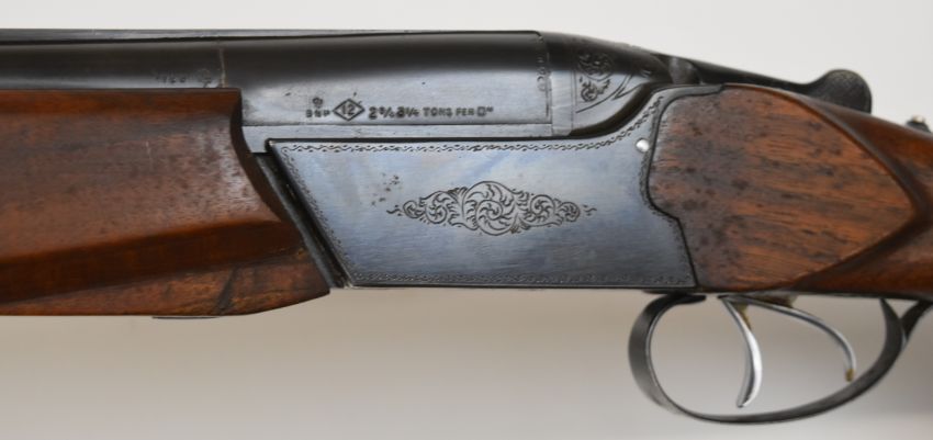 Tula Russian 12 bore over and under ejector shotgun with cocking indicators, engraved locks, underside, trigger guard, top plate and thumb lever, chequered semi-pistol grip and forend, raised cheek piece, sling mounts, vented top rib, double trigger, and 28.5 inch barrels choked ¼, overall length 114.5cm, length of pull 37cm, serial number PN25654.  PLEASE NOTE THAT A VALID RELEVANT FIREARMS/SHOTGUN CERTIFICATE IS REQUIRED TO HANDLE/PURCHASE THIS ITEM.
